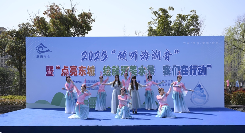 2025年3月22日,2025“倾听海潮音”暨“点亮东城 绘就河美水景 我们在行动” 活动在惠南镇腰沟河畔举行,我校大学生艺术团及播音班受邀参加此次开幕式,承担主持任务并献上精心准备的歌舞《清流之约》。同学们以饱满的热情,展现青春活力与风采。